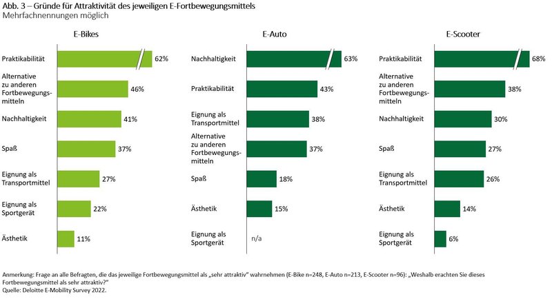 In der jüngsten Studie zur E-Mobilität nahm Deloitte die Nutzungshäufigkeit, die Motive und den Zweck der Fahrten mit verschiedenen elektrischen Verkehrsmitteln sowie die dabei zurückgelegten Distanzen unter die Lupe.